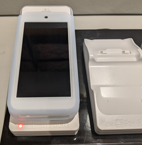 NOTE: Le terminal doivent être équipé du revêtement en silicone de la marque PayFacto. Le revêtement affiche le logo PayFacto au dos. Vous ne devez pas utiliser la base de recharge pour un terminal non protégé par le revêtement en silicone.